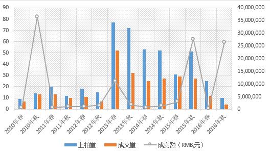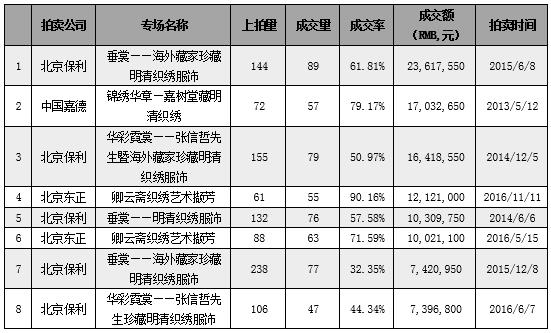 2010年春—2016年秋,织绣拍品部分专场成交情况: