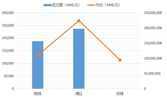 2010年春—2016年秋,各种织绣拍品成交额、均价对比图: