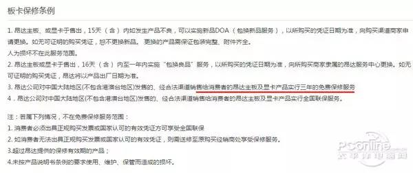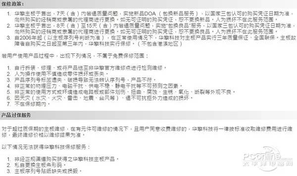 至于其他三年保的,也就是低保水平,没什么说的了。当然,愿意提供超出行业平均水平保修条款的厂商,肯定是对自己的产品品质以及售后部门的能力有非常高的自信的,因此毫无意外地,条款最优的就是全球最大的两家主板厂商~