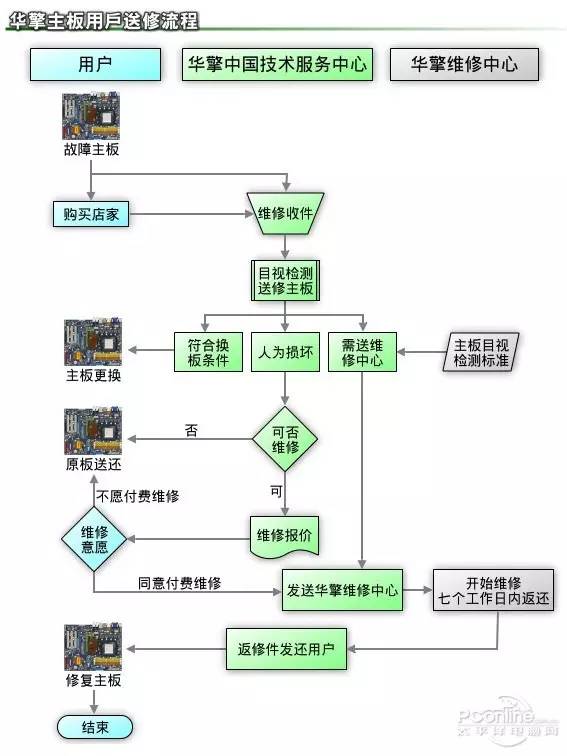 但是华擎比较人性化的是,在官网找主板保修条款的时候看到了下面这张流程图——