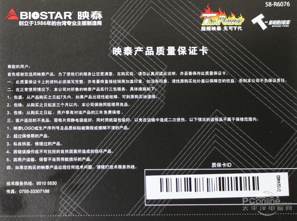 今天截的这堆条款,除了映泰都是来自品牌的官网,还好手边有一块映泰主板,把里面的保修卡翻了出来...