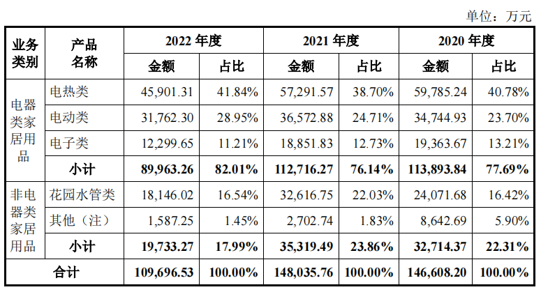 香江电器亦涉及到部分非电器类家居用品,包括花园水管、无烟不粘锅、拖把桶、坐垫等,其中花园水管是主要产品,不过占比较小。