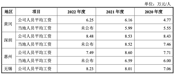 此外,香江电器的主要人员分布在黄冈、深圳、惠州、无锡等地,四个地区员工人数占公司员工人数95%以上。香江电器的平均薪酬略高于当地平均薪酬水平,具备一定竞争力。