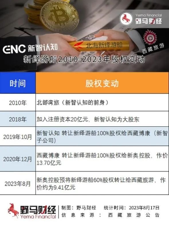 2019年8月,新智认知就将其持有的新绎游船100%股权划转至其全资子公司西藏博康;2020年12月2日,西藏博康将其所持有的新绎游船100%股权以13.7亿元作价转让给新奥控股。如今,西藏旅游重启收购计划,预购买新绎游船60%股权。