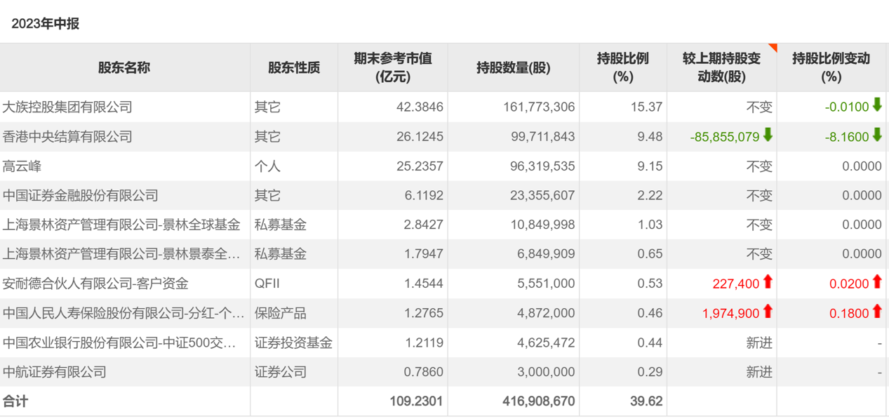 大族激光半年报披露的前十大股东最新持股情况显示,香港中央结算有限公司持股比例较一季度末减少8.16%,让出第一大股东位置;大族控股集团有限公司重回第一大股东位置。