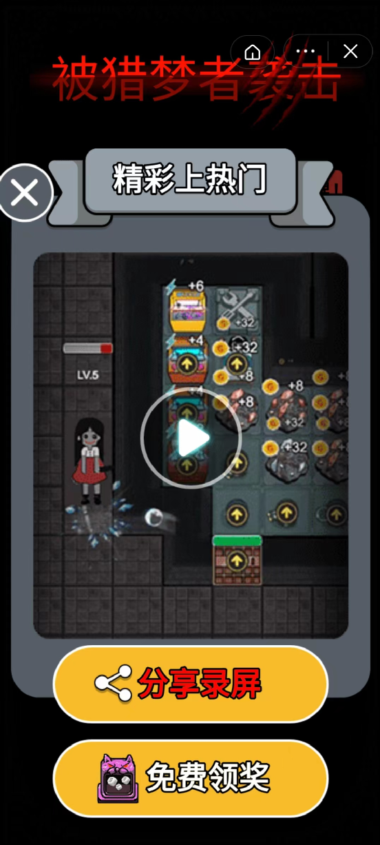 各种小游戏用最低成本的方式快速吸引玩家注意力。如利用抖音热门素材“救救狗狗”引流,点进去却发现这是某RPG游戏中的一个副玩法;“拔插销”“爬塔”等题材也具备同样效果。但相比于这种让玩家“直呼上当”的方式。难度反转的新颖性则会赢得玩家好感,玩家也更倾向于看广告来获得一些辅助性支持。