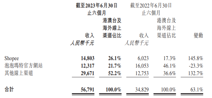 目前泡泡玛特最主要的海外电商平台是Shopee,上半年贡献收入约人民币1480.3万元,其次泡泡玛特官网收入约1231.7万。