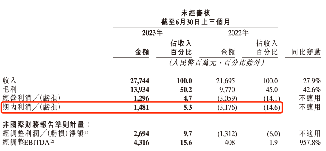 财报显示,2023年Q2,快手营收达277.4亿元,同比增长27.9%;更重要的信息是,快手从去年同期亏损31.76亿元,转为盈利14.81亿元。