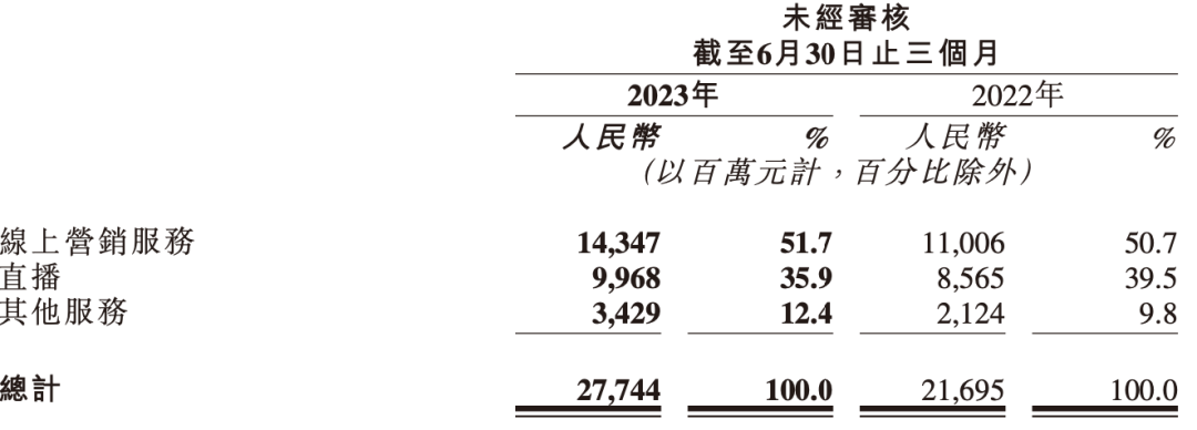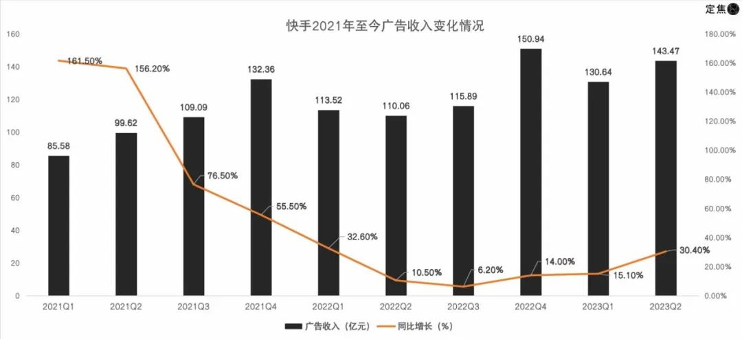 本季度,快手广告收入同比增长30.4%达143.47亿元,占总收入的51.7%。快手广告分为内循环广告和外循环广告,“内循环”指快手平台上的电商商家和主播在站内投放广告,“外循环”则指来自站外的品牌和商家在站内投放广告。