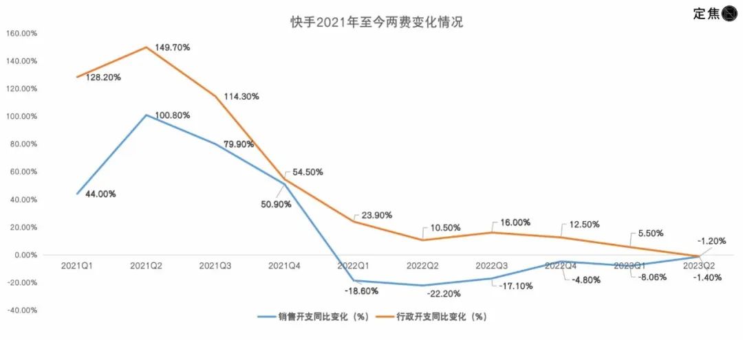 当然,为了实现最终的盈利,快手已经连续好几个季度“节衣缩食”,通过降本增效优化账面数据。快手的“销售及营销开支”六个季度同比增速为负,而“行政开支”也连续四季度下滑。