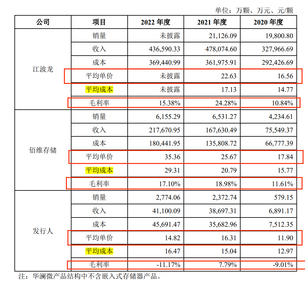 同期,可对比公司佰维存储平均单价分别为17.84元/颗、25.67元/颗、35.36元/颗;2020-2021年,江波龙的平均单价分别为16.56元/颗、22.63元/颗(注:2022年未披露)。