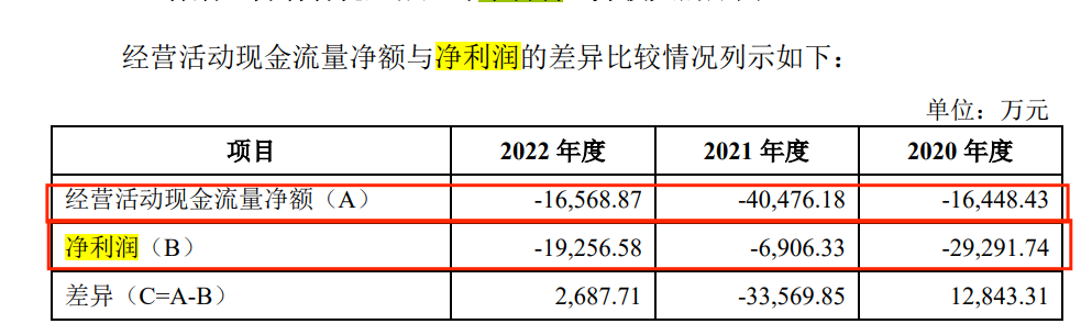 与此同时,企业的经营现金流也长期为负,基本靠融资生存。2020-2022年,其经营活动现金流净额分别为-1.64亿元、-4.05亿元、-1.66亿元。