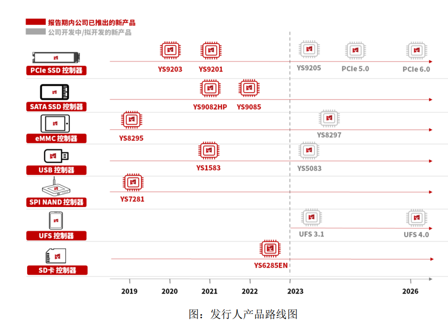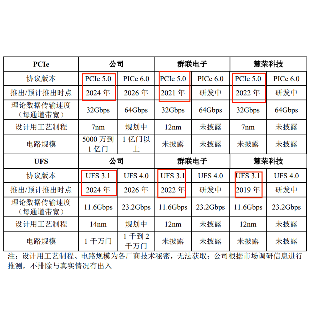 此外,得一微计划投入6817.5万元的UFS3.1,同样是计划于2024年上市,而群联电子、慧荣科技分别于2022年、2019年推出相同协议版本的产品。