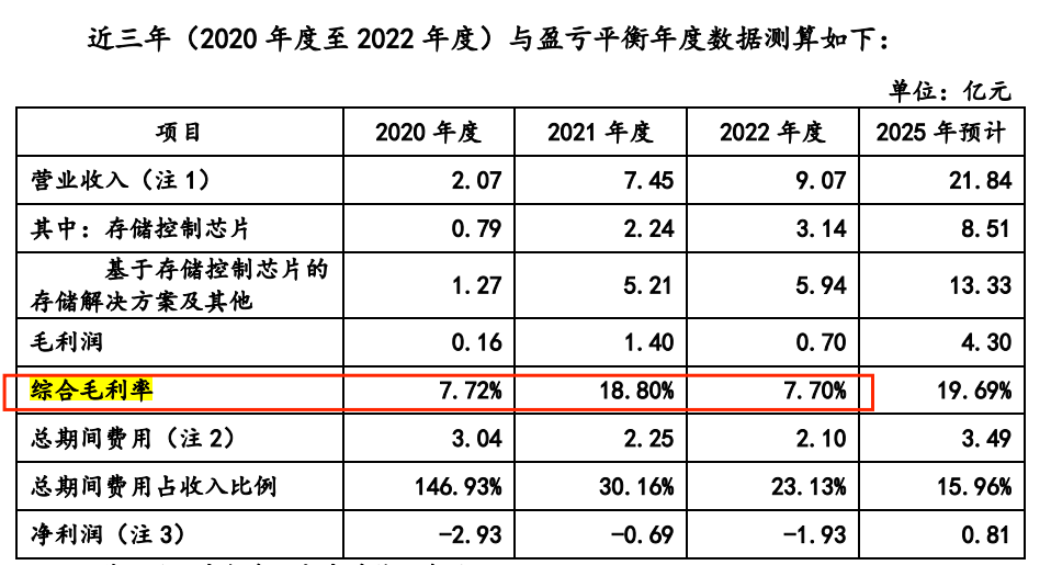 若以此计算,企业2022年至2025年的收入复合增长率需达到34.04%,综合毛利率需达到20%左右,其中存储器产品毛利率需要达到6%左右。这与其报告期内收入增速与综合毛利率均大幅下滑,且2022年四季度存储器产品毛利率下降到-40.60%的走势大相径庭。