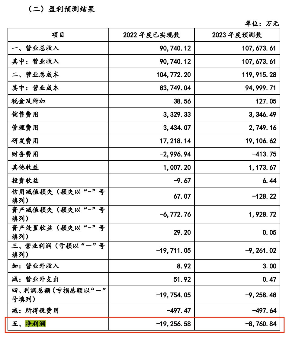 按照得一微的预测,2023年企业将继续亏损,数额为8760.84万元。