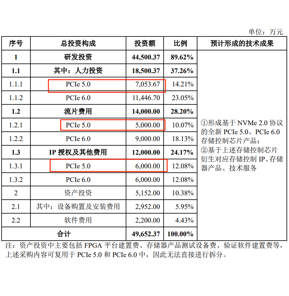 例如,在PCIe存储控制器项目中,PCIe5.0产品计划投入约1.81亿元,并于2024年上市。而群联电子、慧荣科技分别于2021年、2022年将相同协议版本PCle5.0的相关产品上市。