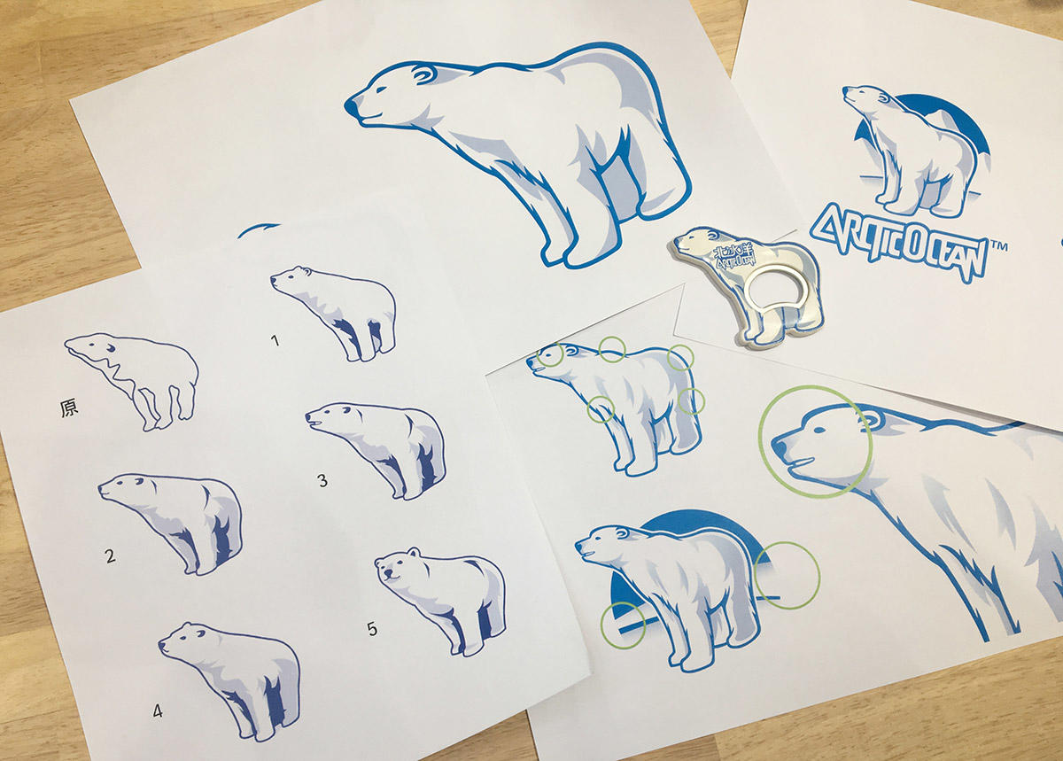 90年代的北冰洋汽水瓶形状宽胖,像一只迷你啤酒瓶,北极熊的logo是木刻,线条粗糙。现在的logo上,北极熊维持了原来绘画的角度,在大体轮廓上重叠,而多了神态和性格。它温和又自信地眺望着远方。整体瓶身则变得瘦长,瓶底宽于瓶肩,玻璃略厚,避免过于女性化,也有利于降低运输中的磨损。