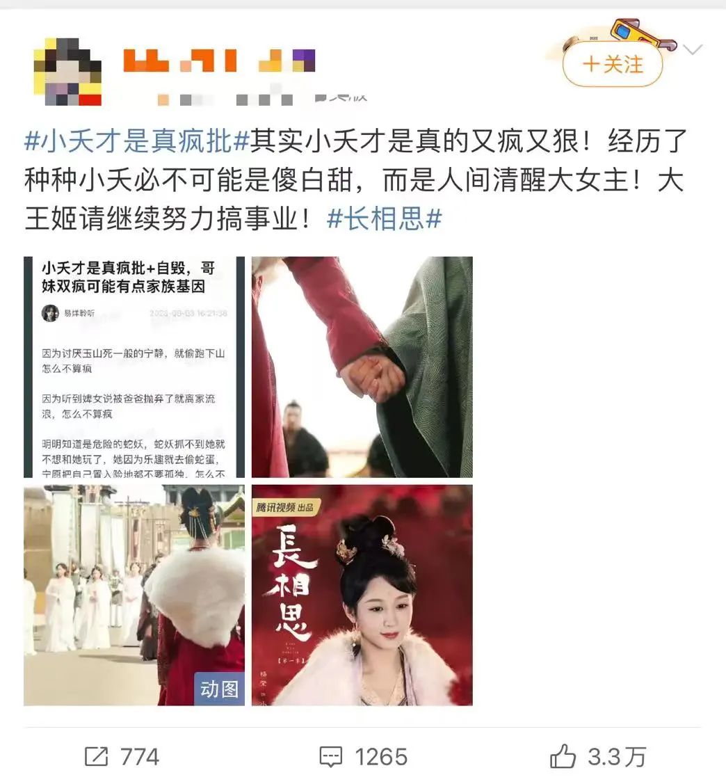 在《长相思》里,原本玱玹的“霸总”人设也被重构,从温情的“宠妹狂魔”,逐渐过渡到爱而不得的“疯批”,每一个阶段的人设都能被观众接受,也更适配当下观众的取向。