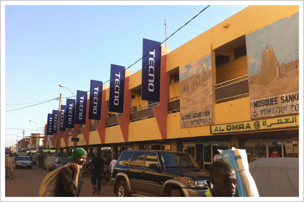 “铺天盖地,从近到远,密密麻麻,都是Tecno Tecno Tecno Tecno Tecno Tecno,每个店面的poster,每个bill board,每块玻璃上,每个店面都是Tecno的广告。”