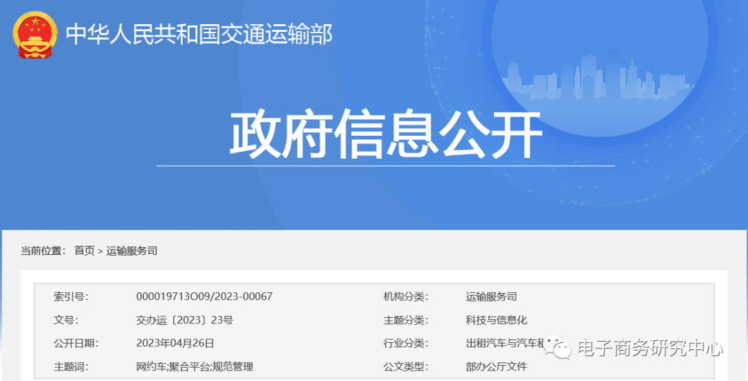 4月26日,交通运输部等五部门联合发布《关于切实做好网约车聚合平台规范管理有关工作的通知》。对网约车聚合平台做了界定与责任厘清。五部门《通知》划出了聚合平台的“三不得”,即“不得以不正当价格行为扰乱市场秩序”,“不得干预网约车平台公司价格行为”,“不得直接参与车辆调度及驾驶员管理”。