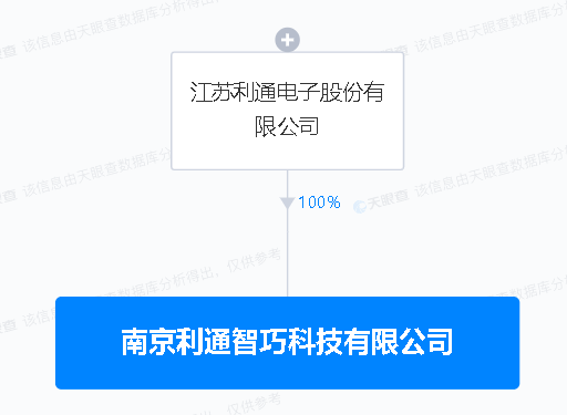 天眼查APP显示,近日,南京利通智巧科技有限公司成立,注册资本2000万元人民币,经营范围包含:5G通信技术服务;汽车零部件研发;集成电路设计;半导体分立器件制造等。天眼查股权穿透显示,该公司由利通电子100%控股。