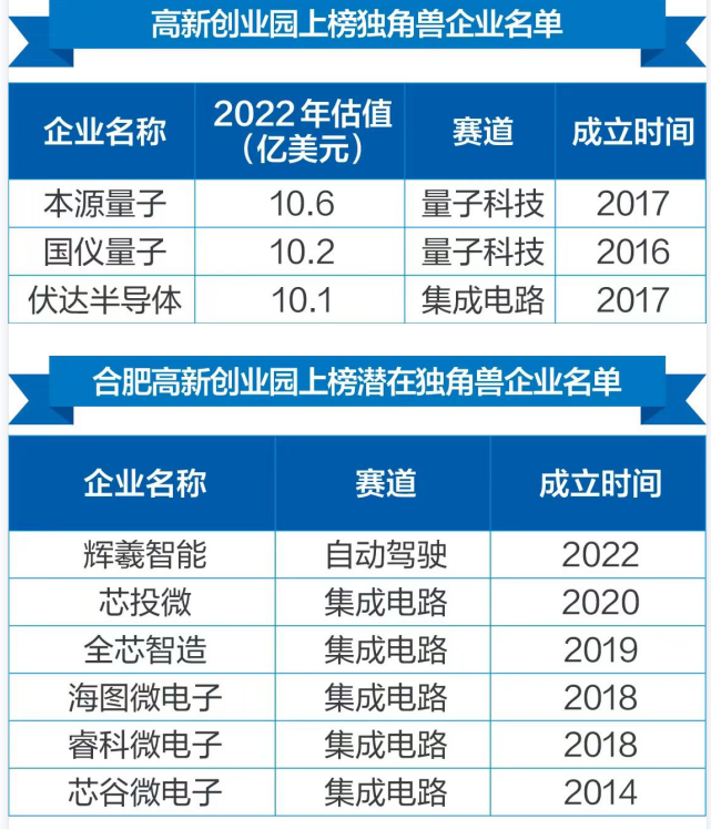 今年6月,长城战略咨询发布报告显示,2022年中国共有357家独角兽和653家潜在独角兽企业。其中,合肥高新区共有4家独角兽企业、14家潜在独角兽企业上榜,而其中3家“独角兽”和6家“潜在独角兽”,都来自合肥高新创业园,约占全区的75%、45%。