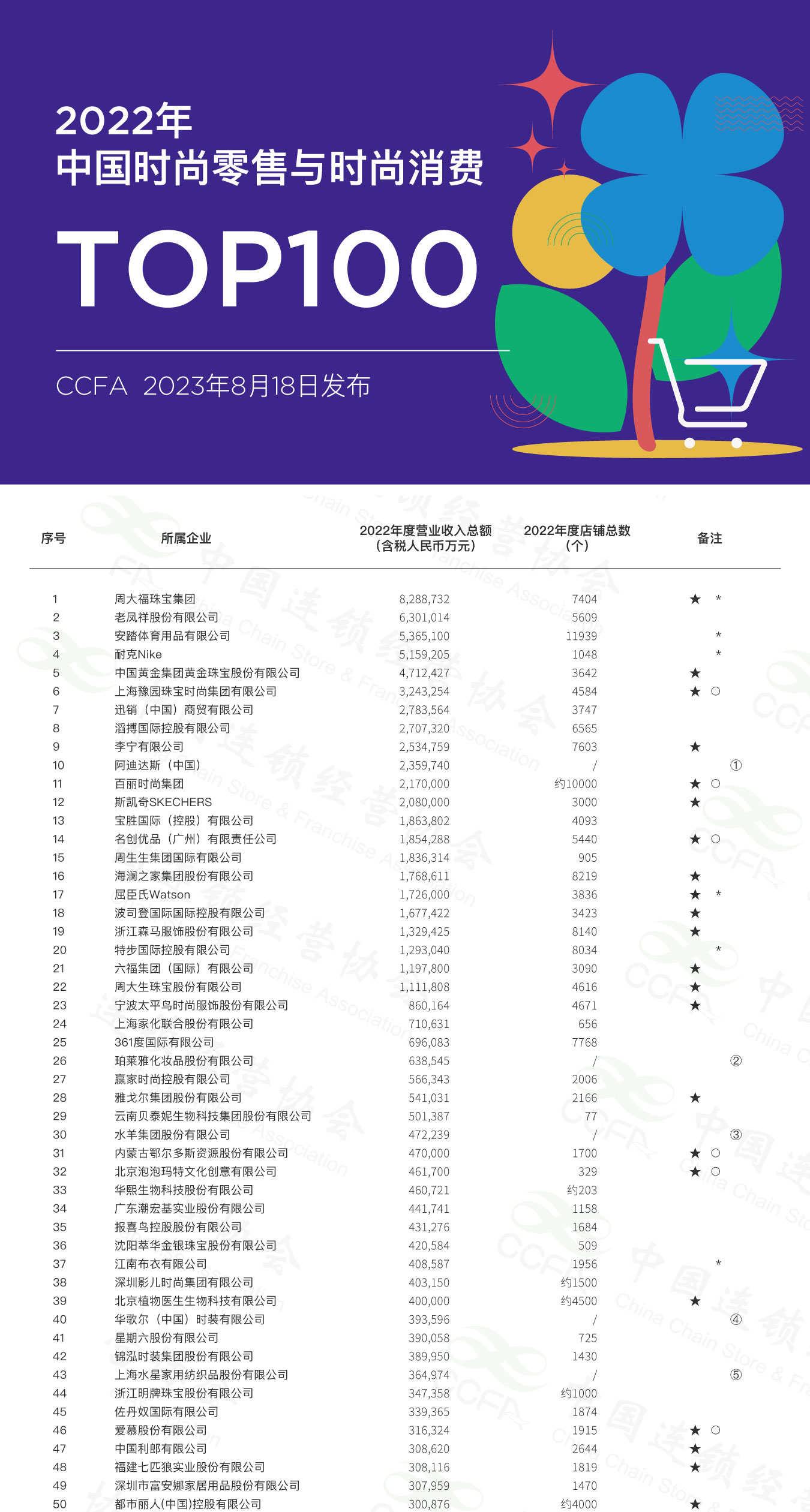 附:“2022年中国时尚零售与时尚消费TOP100”榜单