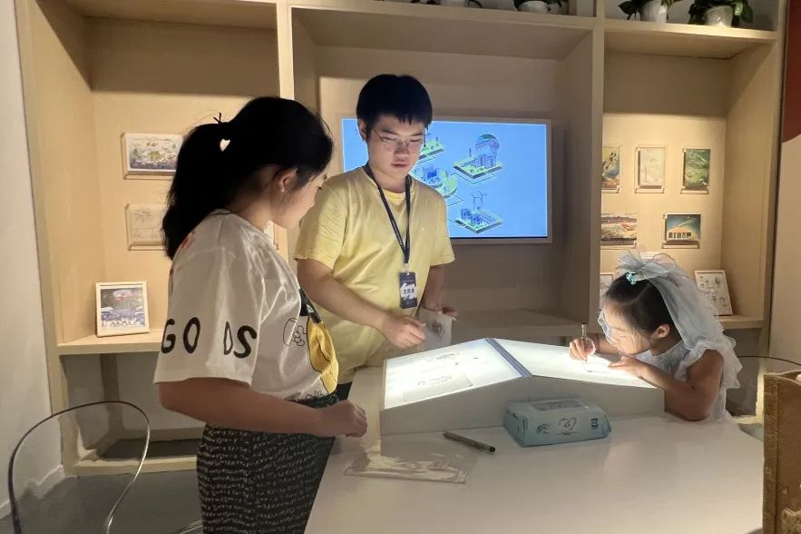 时值暑期,为了提升更多孩子的展览参与度,现场还开设了插画临摹活动,选取了部分《科学画报》上的精美封面和插图,鼓励孩子们亲手临摹。