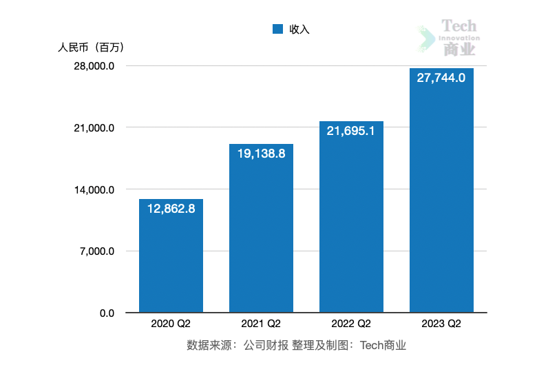 其他服务收入为34亿元,同比2022年Q2的21亿元,表现增长超60%。该收入增幅来自其电商业务增长,该公司称本季度活跃商家数量、电商月活付费用户数量增加,其电商商品交易总额同比增长。该公司财报称,2023年第二季度其月活跃买家超过1.1亿人。