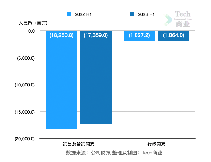 上半年该公司行政开支为18.6亿元,同比上一财年同期的18.3亿元,该开支微幅增长2%。