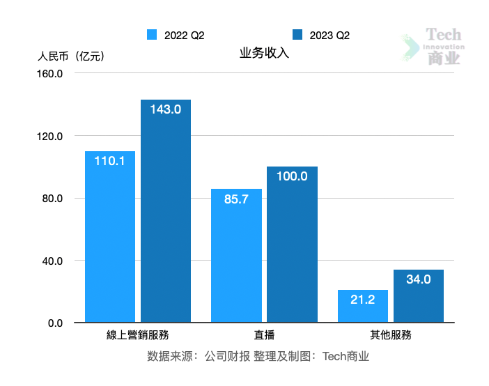 直播业务二季度收入为100亿元,同比上一财年同期的86亿元,该收入增长16%。财报称其月度付费用户平均收入贡献同比增长。