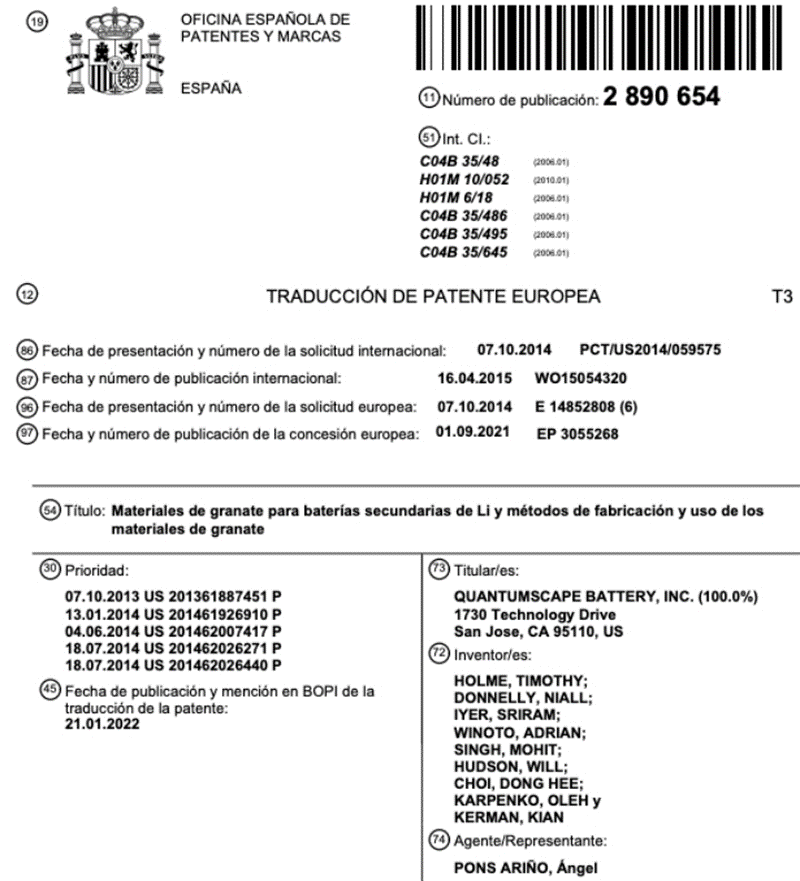 QuantumScape申请的与固态电池相关的专利技术(图片来源:知产宝)