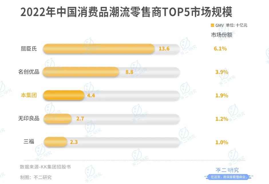 与同行业上市公司相比,例如名创优品已成为全球规模最大的自有品牌零售商,KK仍去之甚远,不得不面对成本控制和第三方品牌依赖的压力。