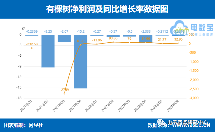 8月23日,有棵树发布2023半年报。有棵树上半年实现营收2.35亿元近“腰斩”,净亏损5928.62万元。