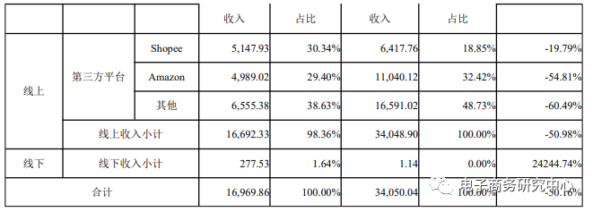 二、跨境电商营收同比下滑50.16%,仍未摆脱亚马逊依赖