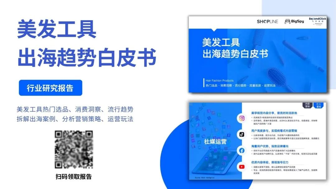全球零售解决方案商SHOPLINE联合数字营销服务品牌BeyondClick飞书点跃、全球广告Spy工具BigSpy重磅推出《美发工具出海趋势白皮书》,涵盖当下美发产品海外热门选品,洞察美发工具品类的消费趋势和品类市场流行关键词,解析出海成功案例分析和DTC营销策略等。