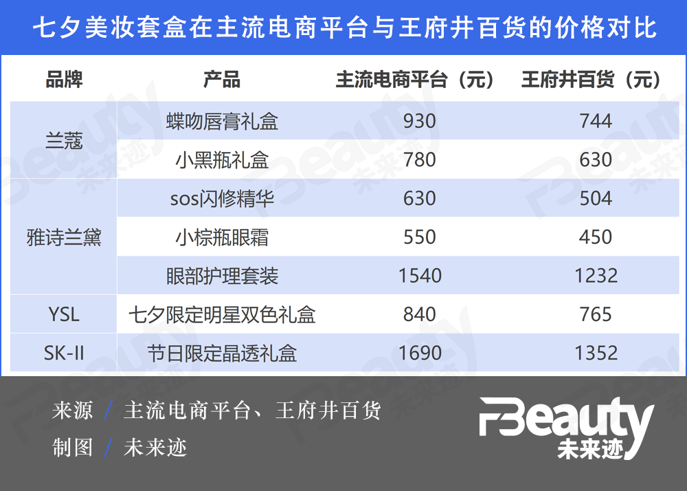 七夕节期间,《FBeauty未来迹》调研了多家的百货商场的化妆品营销情况发现,多家百货商场的品牌专柜都在积极参与节日营销,且礼盒的价格普遍要低于线上。打破了市场里,线上更具价格优势的常规认知。