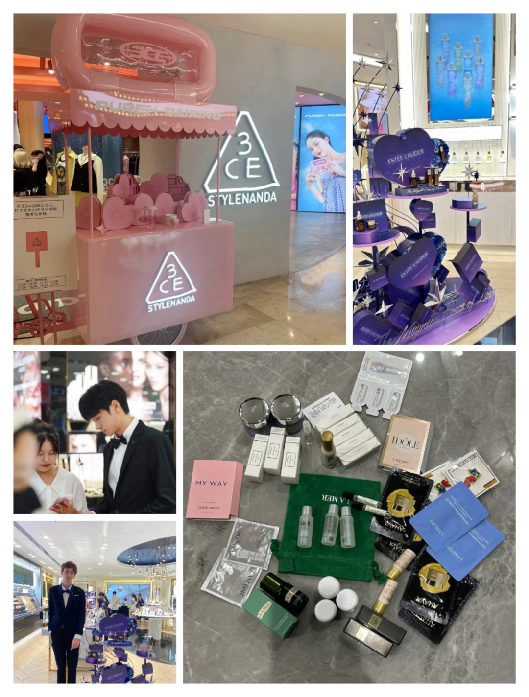 不仅如此,今年线下的节日氛围也比较浓厚。《FBeauty未来迹》走访发现,目前多个美妆专柜都已经摆放好了七夕相关物料,雅诗兰黛、兰蔻、GUCCI等专柜还有“帅哥派样”活动,扫码或刮刮卡获得产品小样或鲜花礼品,吸引不少消费者前往柜台拍照打卡“薅”羊毛。“一般帅哥派样只是节日才有,但今年七夕参与的品牌格外多。”一喜好收集小样的小红书博主告诉《FBeauty未来迹》。