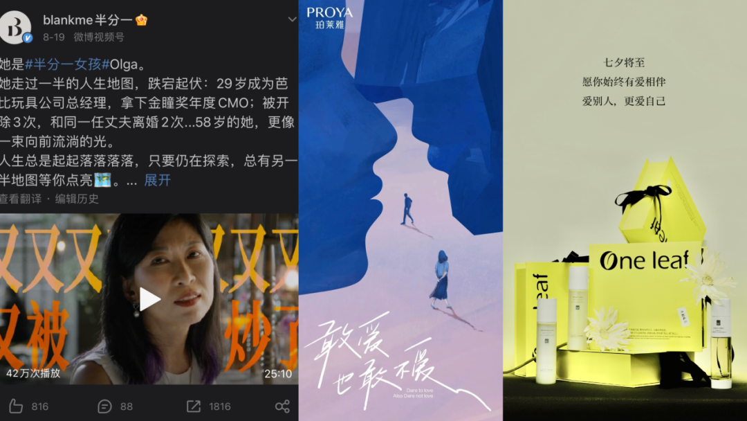 今年七夕节的画风,也发生了重要的改变。过去品牌管用的趁爱打劫、恋爱脑营销、直男营销似乎不大奏效,且国货品牌在这一方面觉醒得更早。