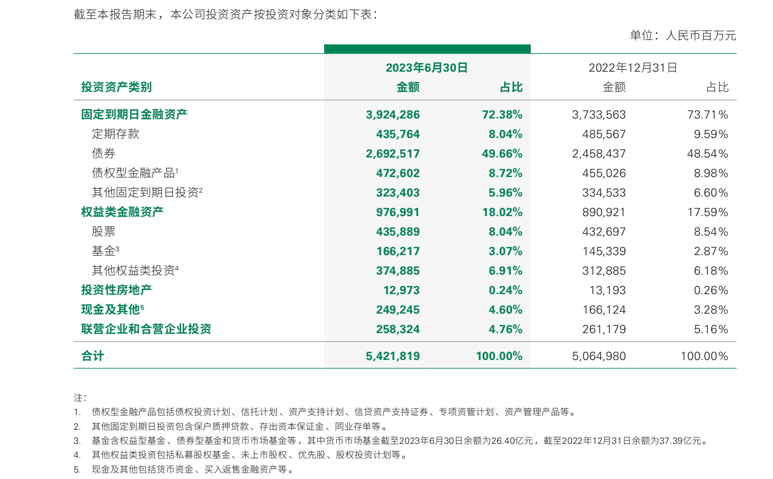 截至2023年6月30日,中国人寿投资资产达5.42万亿元,较2022年底增长7.0%。