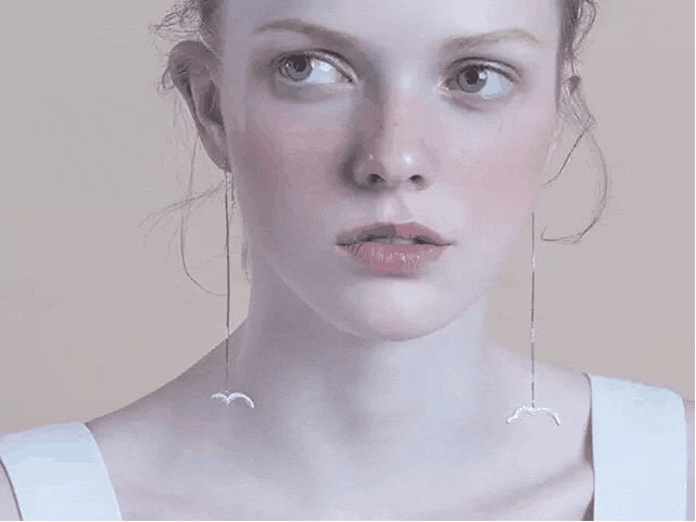 没有经历过一天的设计培训,Kar 的作品看上去更像是非传统的设计,解构,现代,美颂之光的耳饰多为立体,不少甚至可以在平面和立体之间能够灵活自如的转换。比如【宇宙 耳环】,它的初始状态是三个圆圈的叠合,但如果佩戴者愿意,可以围绕着圆轴对三个圆圈进行360度的旋转,通过组合耳环可以出现不止一种的姿态。一副耳环,可以创造出三幅耳环的效果,充满结构性的美感。