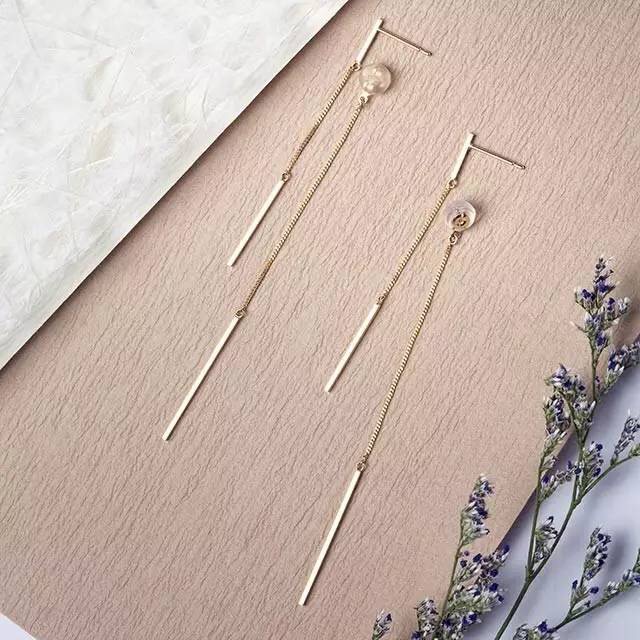 垂直的线条搭配柱形的坠饰,简约、又有质感,长线条还能起到修饰脸型的效果。