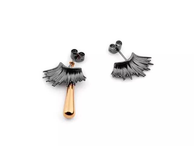 金色眼泪睫毛耳钉,以左右不对称的形式展现更为丰富的细节。眼泪材质为925银镀18k金,睫毛材质为925银镀黑金。