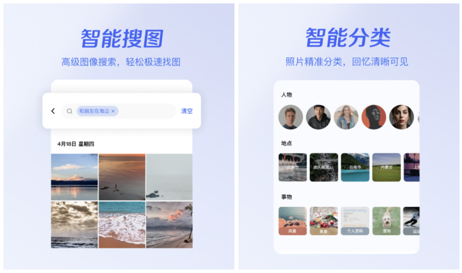 在实现用户照片高效备份与管理需求的同时,一刻相册致力于成为更懂用户的智能相册助手。尤其在在图片管理方面,面对用户在相册管理过程所遇到的图片整理繁琐、检索困难的主要痛点,产品研发团队引入AI管理能力,通过引入视觉AI能力主动帮助用户进行相册管理,并进行相应图片管理技术专利布局,自动对人物、事物、地点、类型等进行分类,以实现图片的高效检索;同时,在搜索能力上,产品基于技术的革新并结合向量搜索的能力,能够实现基于时空人事的复杂搜索,实现便捷查找的能力。在照片故事场景,一刻相册通过AIGC的能力,为每一张照片创造适宜的文案,让尘封的记忆变得鲜活,通过智能化能力为用户和产品赋予情感化价值。