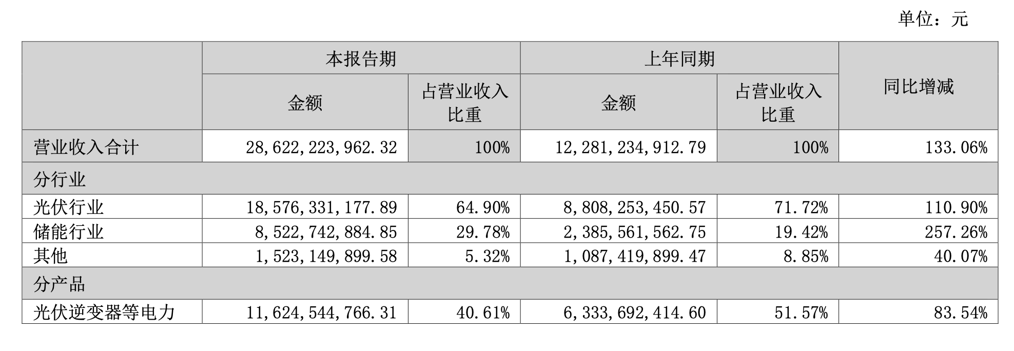 阳光电源的储能业务是其上半年业绩的主力推手。该公司储能系统毛利率提升了12.29个百分点,达到30.66%;储能业务收入同比增加了257.26%。