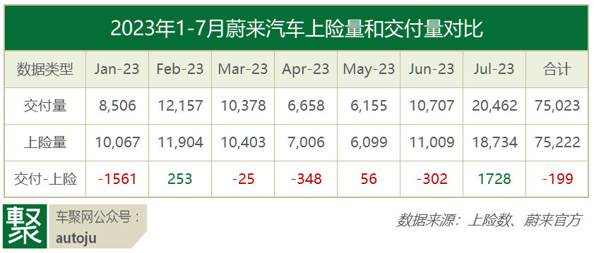 一、造假,假的才能算是造假。我们对比蔚来今年1-7月的上险数和交付量,两份数据各月均有差异,但1-7月综合来看,两类数据极为接近,整体的差异值仅为199辆,这说明数据的准确性和真实性,因此自然不能说数据存在造假了。