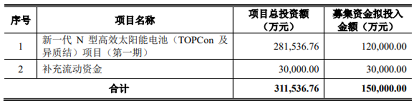 该项目为公司与安庆市宜秀区人民政府签订的《新一代 N 型高效太阳能电池片(TOPCON 及异质结)生产项目投资协议书》所约定两期投资项目中的第一期电池片投资项目。
