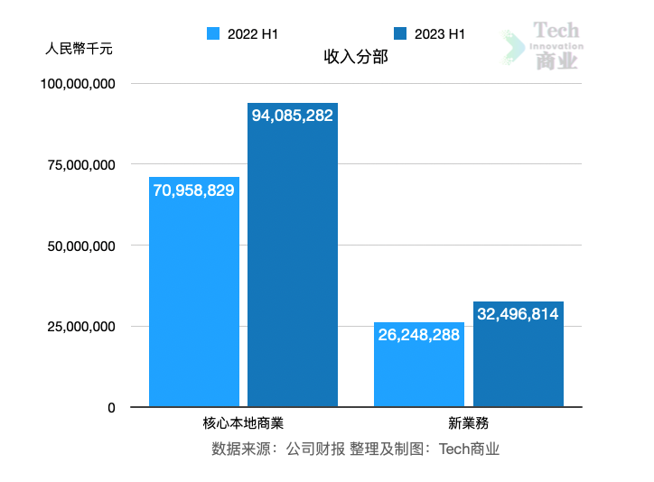 其中核心本地商业上半年收入为940亿元,同比上一财年同期的710亿元,该业务收入增长33%。