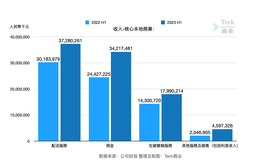 上半年核心本地商业收入中,来自配送服务的收入为373亿元,同比增长24%。