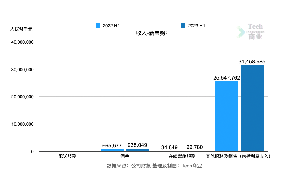 上半年来自新业务的收入为325亿元,同比增长24%。